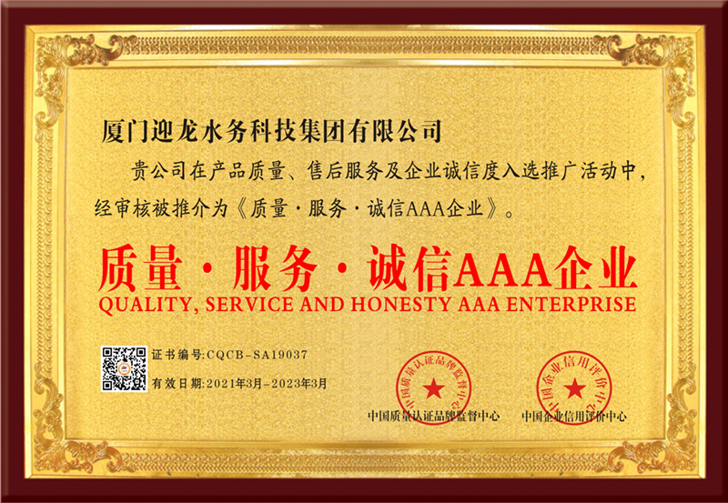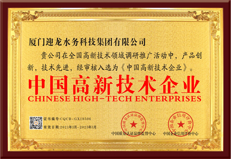 厦门迎龙水务科技集团有限公司是上海迎隆水务工程设备(集团)有限公司全资子公司,注册资金8666万元,是集研发、生产、销售、安装钢塑复合水箱、不锈钢水箱、箱泵一体化、BDF地埋式水箱、变频恒压给水设备于一体的综合性供水公司。公司通过ISO9001:2015标准认证,同时获得福建省卫生厅颁发“卫生许可批件”“福建省疾病预防控中心的检测报告”以及荣获“中国驰名品牌”“中国百强优秀企业”“中国高新技术企业”“全国给排水行业十大著名品牌”“国家权威检测质量合格产品”“质量.服务.诚信AAA企业”"科技型中小企业”等荣誉,并且获得多项行业专利,在国内外有较高的知名度。